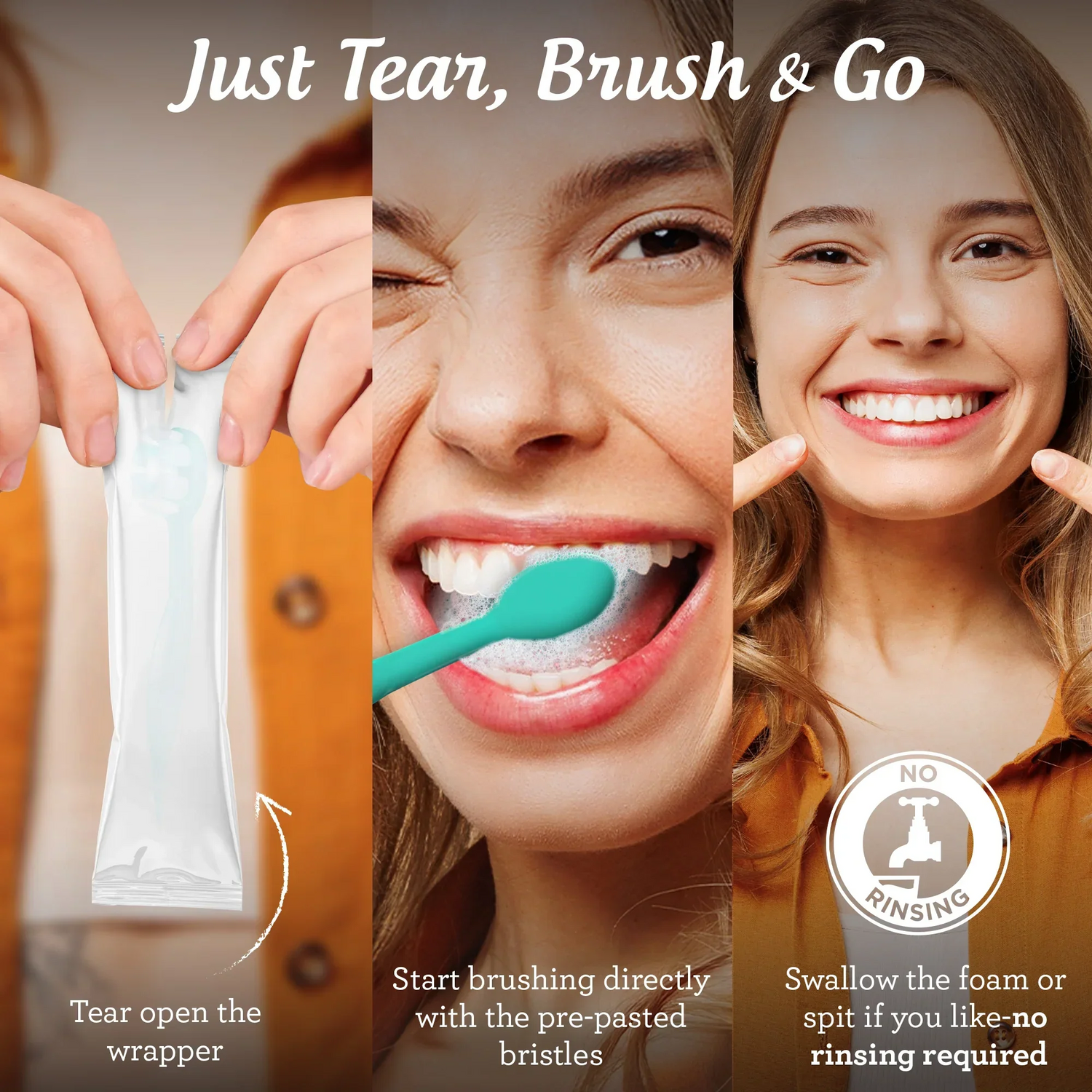 NO WATER NEEDED: This toothbrush is pre-filled with toothpaste with a refreshing wild mint flavor. It eliminates the need for water or extra toothpaste. Simply brush, clean, and go for a fresh smile—perfect for busy days, long flights, and outdoor adventures.
